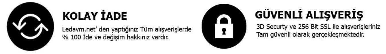 www.ledavm.net online alışveriş sitemiz, led aydınlatma ürünlerini rahatlıkla satın alabileceğiniz güvenli bir online alışveriş sitesidir.