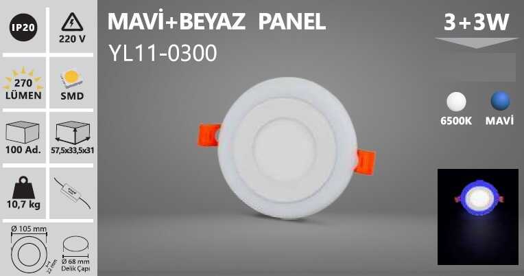 LED PANEL / SIVA ALTI / ÇİFT RENK MAVİ+BEYAZ