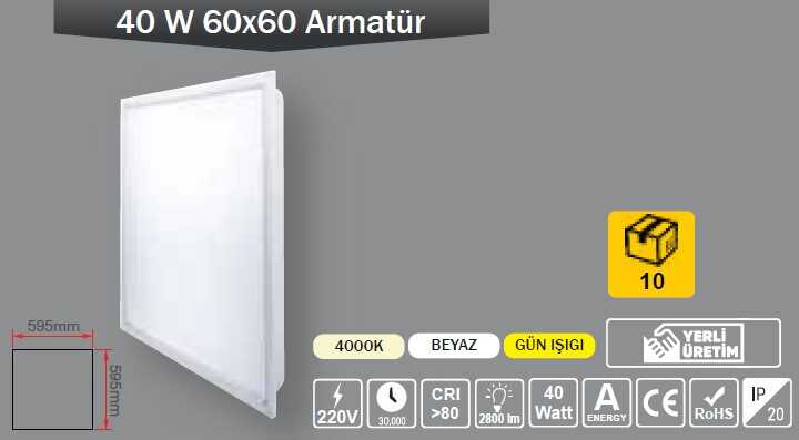 Boyut ve Şekil: 60x60 cm ölçülerindeki bu LED panel, standart tavan panellerine mükemmel uyum sağlar ve mekanlarınıza estetik bir dokunuş katar.